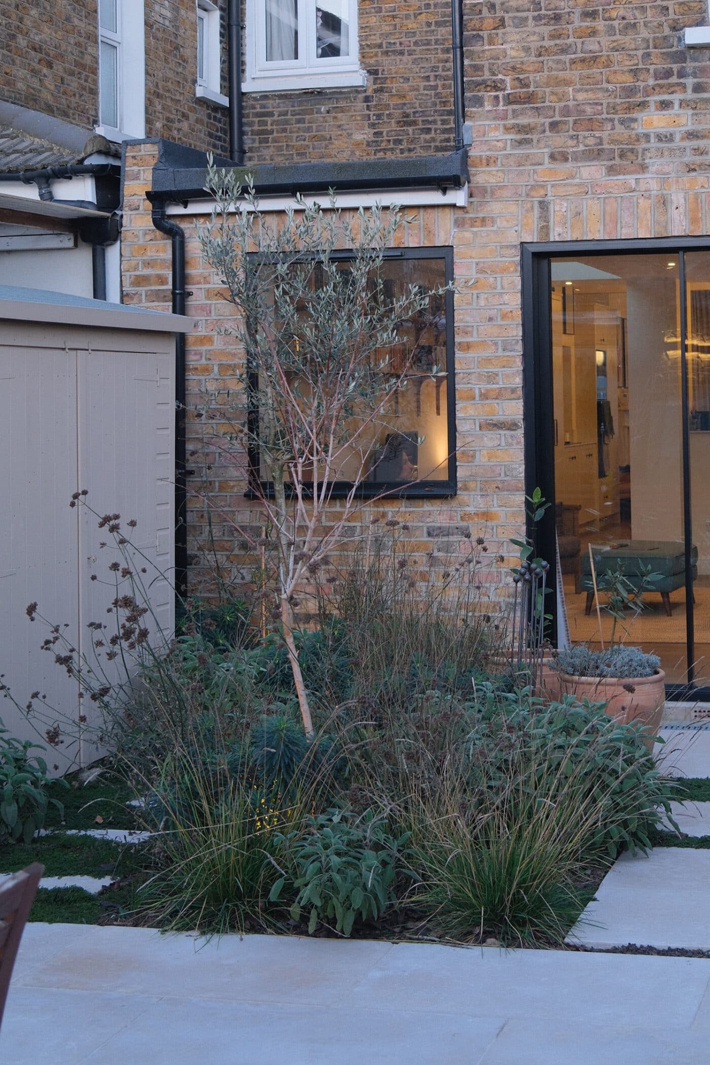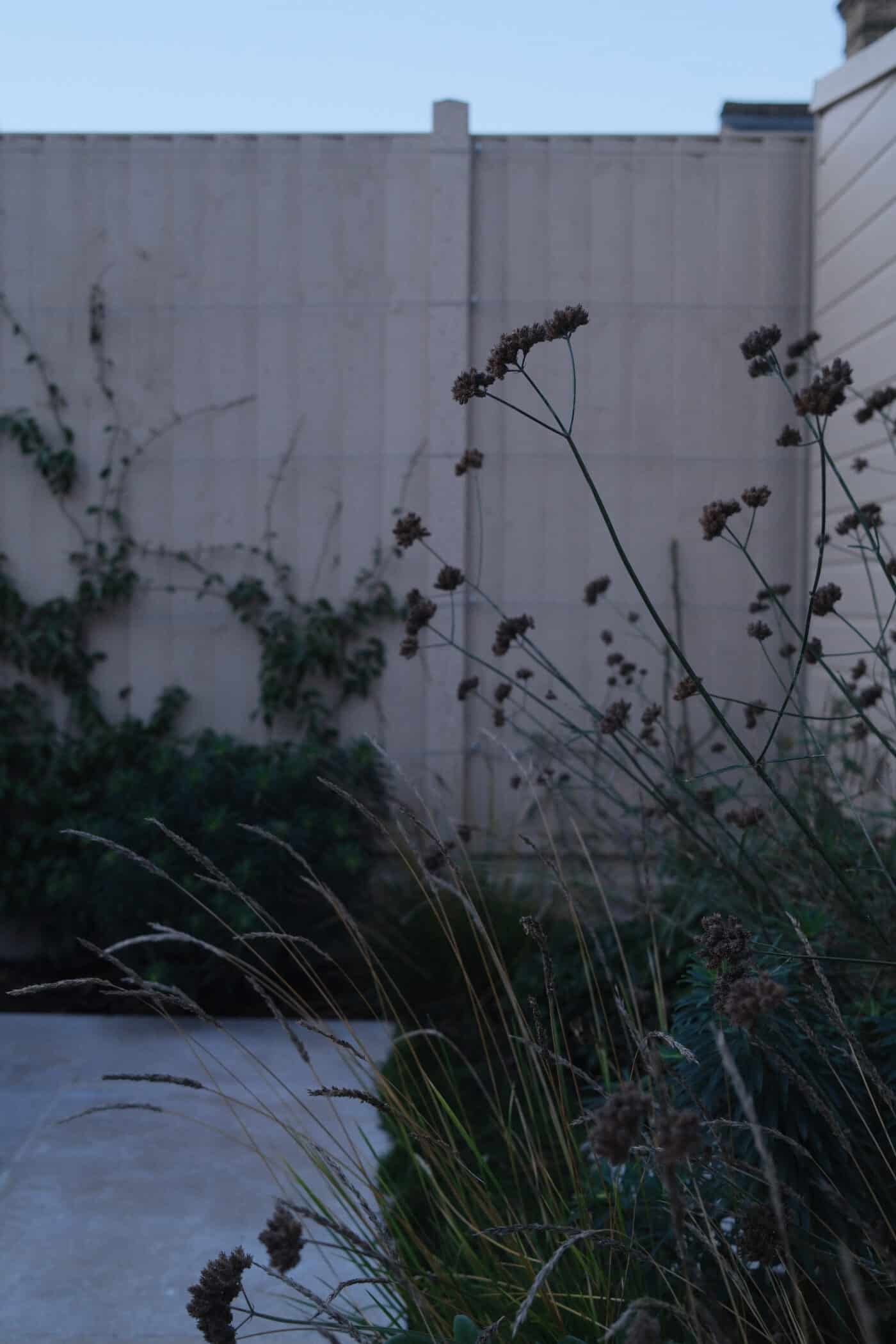 At the back of the garden, the remains of summer’s Verbena bonariensis still add huge impact right through the winter with airy height long after flower heads have dried out.